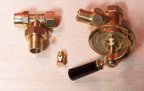 Les principaux éléments du dispositif sont constitués de robinets et de pieds pour stabiliser et rehausser éventuellement le radiateur. Il existe deux sorte de robinets : à manette bakélite ou à volant bakélite.